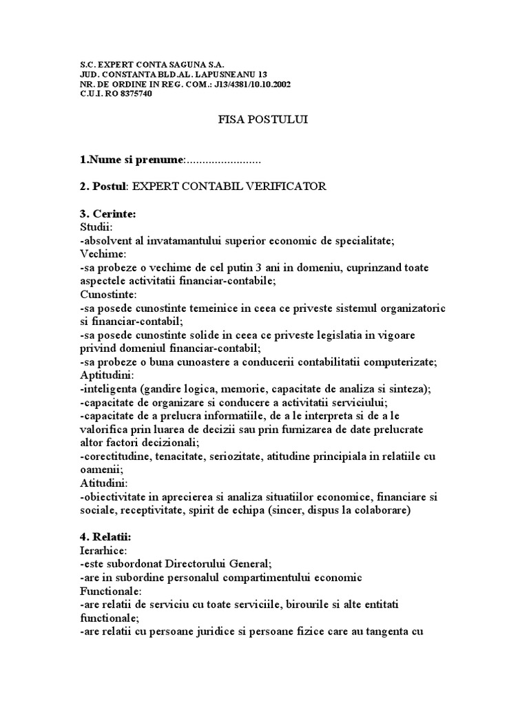 Fisa Postului Expert Contabil