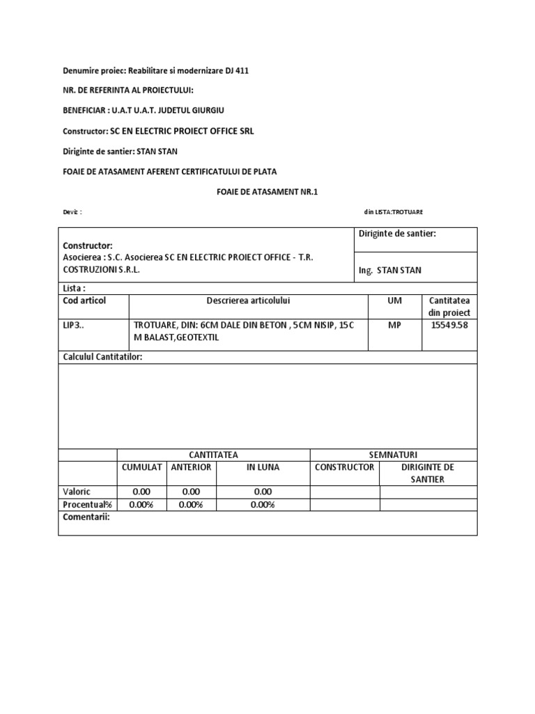 Sc En Electric Proiect Office Srl Deviz Din Lista Trotuare