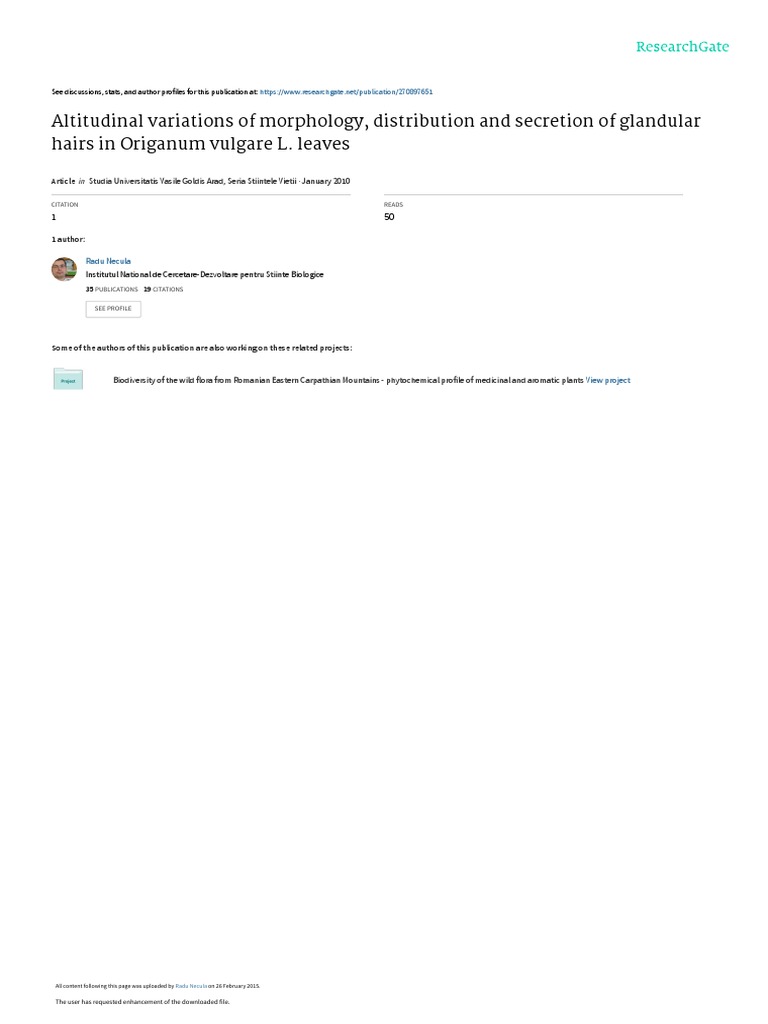Altitudinal Variations Of Morphology Distribution And Secretion Of Glandular Hairs In Origanum Vulgare L Leaves Leaf Microscope