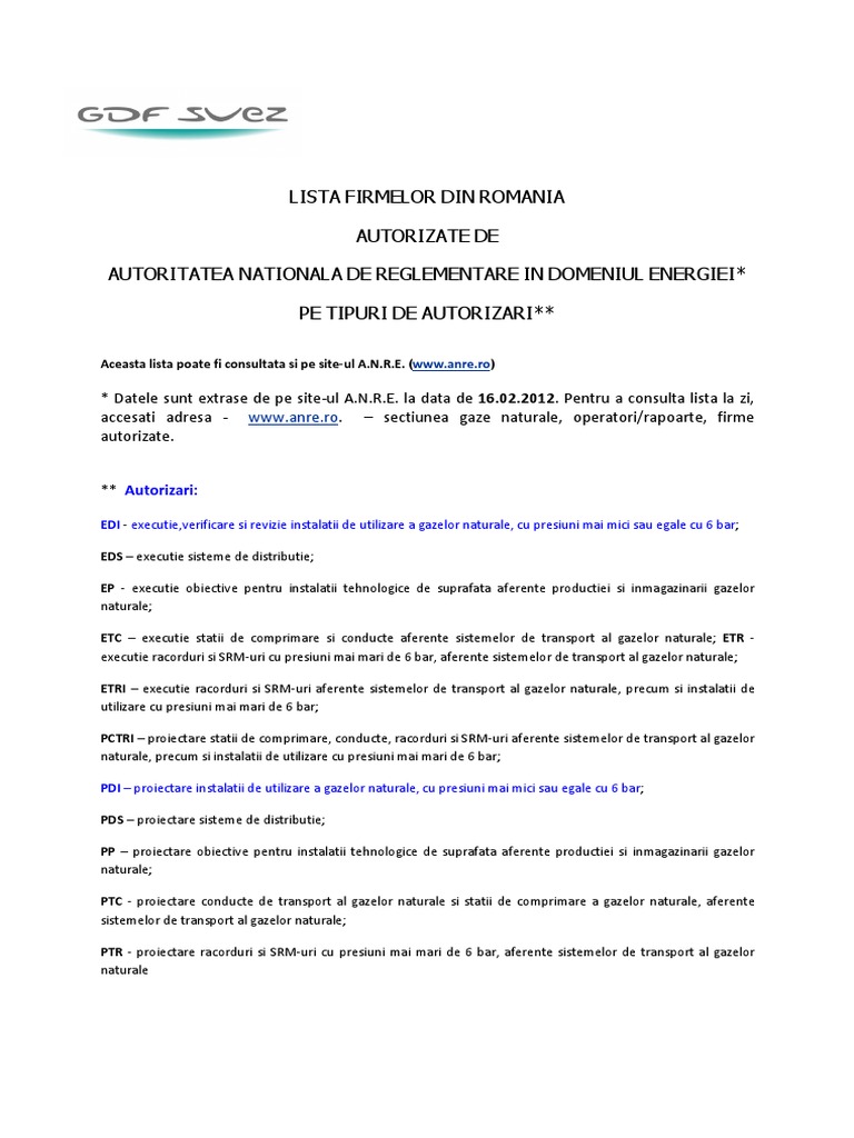 Lista Firme Autorizate Anre 2017 Bucuresti