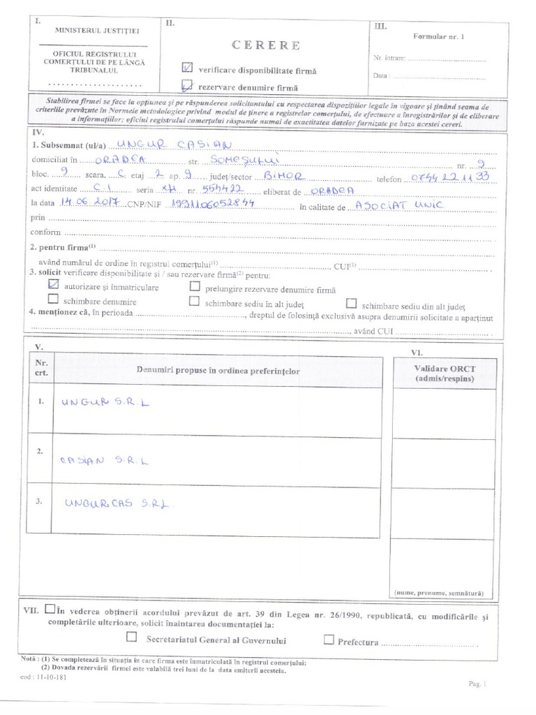 Nr Registrul Comertului Exemplu