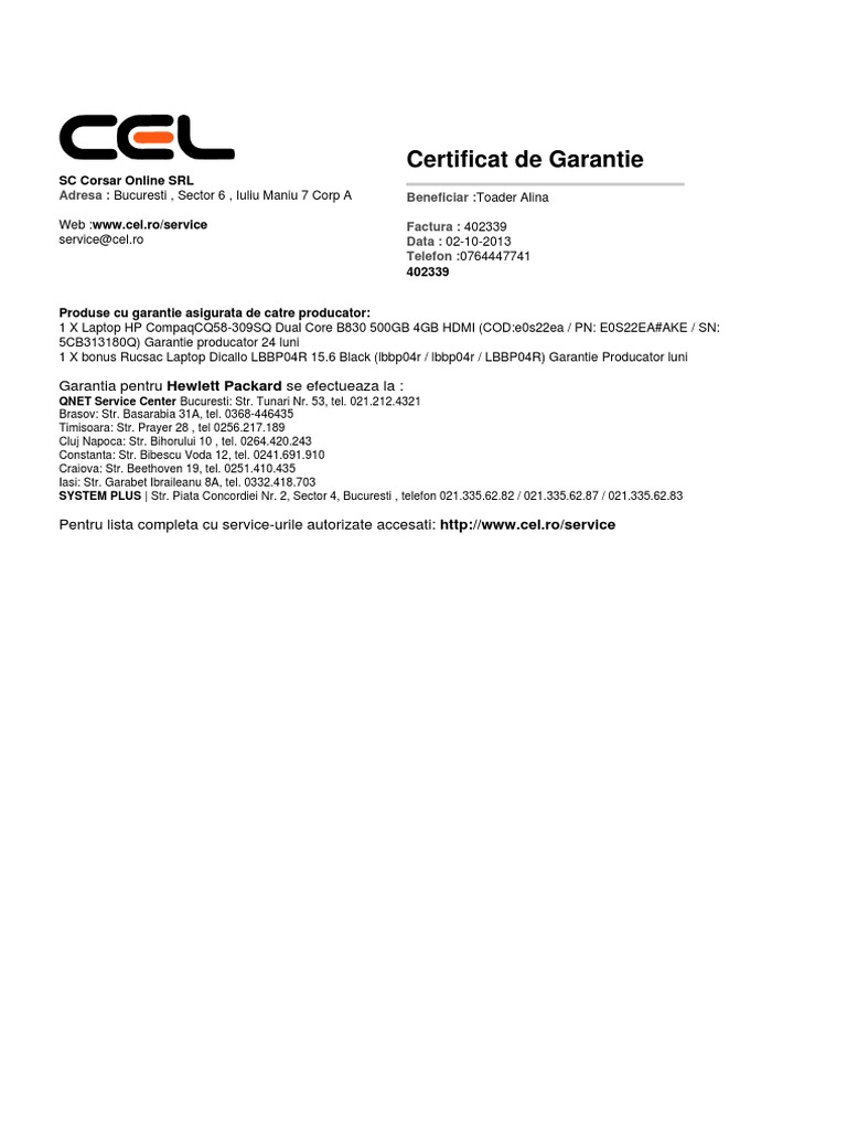 Certificat De Garantie Nu Trimiteti Produse In Service Decat Dupa Ce Ati Completat Formularul De Service